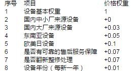 價(jià)格平衡點(diǎn):二手設(shè)備因?yàn)楸阋怂杂惺袌觯⒉皇窃奖阋嗽胶?。關(guān)鍵是要找好一個價(jià)格平衡點(diǎn)。根據(jù)二手SMT設(shè)備的行業(yè)經(jīng)驗(yàn),建議你設(shè)定以下權(quán)重來評估你的價(jià)格是否合理。請見下表: